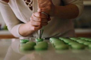 - Pour the almond mixture from blender in a small mixing bowl. Add all-purpose flour, baking powder, baking soda, and salt. Whisk to combine, and set aside.